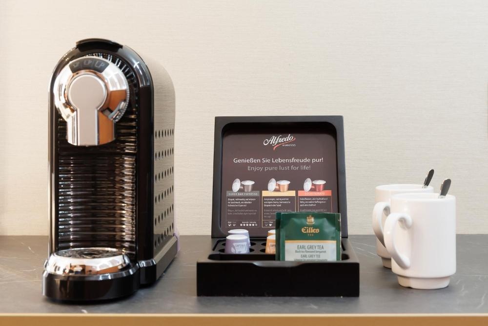 This room has a famous Auping bed, private bathroom, air conditioning, television and coffee-tea facilities .